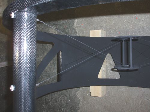 OT Befestigungen Die Verbindungen zu den vier Stangenpaaren werden mittels Innengewinde im Hutgestell gewährleistet. Innerhalb des Styrodurkerns wurden dafür 4 Buchenholzeinsätze geklebt, die wiederum Helicoil Stahlgewindeeinsätze beherbergen. Die Ansätze der Gewinde sind etwas im Buchenkern eingelassen und aufgebohrt, um beim Aufbau den Hut schnell und zielsicher in das Außengewinde der Stangen führen zu können. Einen Stangenbefestigung sitzt exakt unterhalb des OAZ um Durchbiegungen bei Belastungen durch schwere Okulare zu vermeiden. |