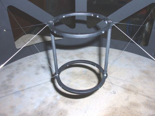 Drahtspinne Als äußerst interessante Möglichkeit einer extrem steifen Fangspiegelbefestigung hat sich eine exzentrisch aufgehängte Drahtspinne erwiesen. Als Draht wurde 0,7mm Edelstahldraht (OBI) gewählt. Für optimale Stabilität müssen die Drähte über Kreuz vom FS - Halter an das Hutgestell geführt werden. Für eine nochmalige Steigerung der Steifigkeit können die sich kreuzenden Drähte verbunden werden. Das kann mittels Verlöten von dünnen Draht (0,3mm) geschehen. Je breiter die Basis (Abstand der Drähte) am FS - Halter und dem Hutgestell umgesetzt werden kann, umso steifer ist die gesamte Spinnenkonstruktion. Auf Grund der von Haus aus stabilen Eigenschaften muss damit aber nicht übertrieben werden. Basislängen von 107mm/135mm (FS/Hut) haben sich als vollkommen ausreichend erwiesen. Als "störrisch" hat sich der Einbau der Drahtspinne erwiesen. Hier muss der FS - Halter und der Hut fixiert werden, um das Drahtwirrwar in den Griff zu bekommen. Interessanterweise benötigt man nur geringfügigen Zug auf