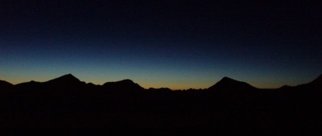 Um 5.30 Uhr MESZ wird es dann merklich heller, die Dämmerung beginnt. Ab etwa 4.00 Uhr ist das Zodiakallicht als deutliche "Haifischflosse" am Osthorizont zu sehen. Wir packen ein und fahren im Hellen Richtung Wallackhaus.