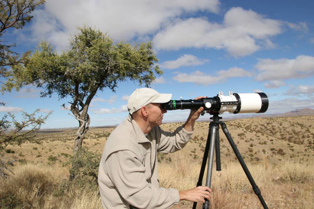 Der Himmel zeigt sich den ganzen Tag bewölkt. Die Bewölkung nimmt im Laufe des Tages kontinuierlich zu, sodass in der Abenddämmerung das Gamsbergplateau komplett in Wolken gehüllt ist. Uns bleibt Zeit für die Auswertung der vergangenen Tage. Auf große Wanderungen verzichten wir, dafür begeben sich Friedl und Achim auf eine Anhöhe und fotografieren die Namib.