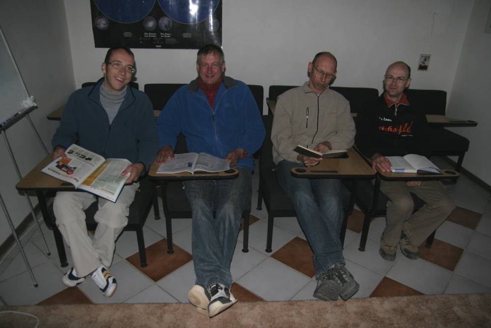 Nach dem Abendessen ist der Himmel komplett zugezogen. An eine Beobachtung glaubt niemand mehr. Trotz der miesen Aussichten herrscht gute Laune. Es gibt den ersten "Vinoabend". Noch ohne Alkoholeinfluss müssen jedoch die ersten von uns nachsitzen, die Klassenarbeit fällt jedoch desolat aus. Draußen wird es immer ungemütlicher. Es fängt sogar kurz an zu regnen. Zusammen mit den vorherrschenden Temperaturen sorgen sich die Farmer und vermuten sogar Neuschnee? Ich verdränge diese Sorge, von Schnee hatte ich dieses Jahr bereits genug.