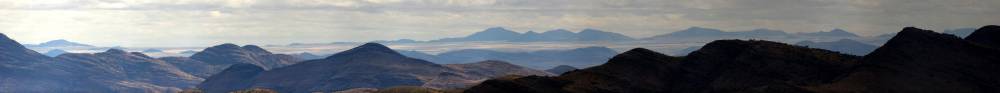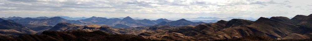 Panorama von Ausläufern des Gamsberges über die 100km entfernte Namib bis zu den