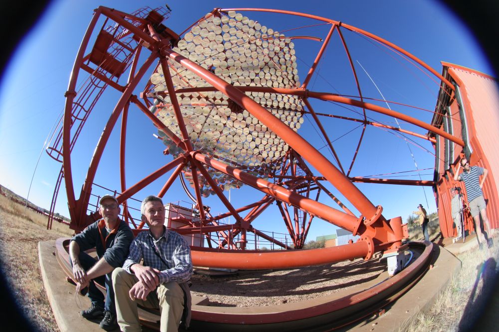 Achim und Hubert am Fuße eines der 4 Teleskope vom HESS Projekt