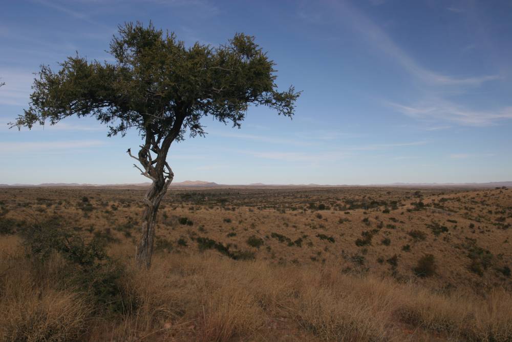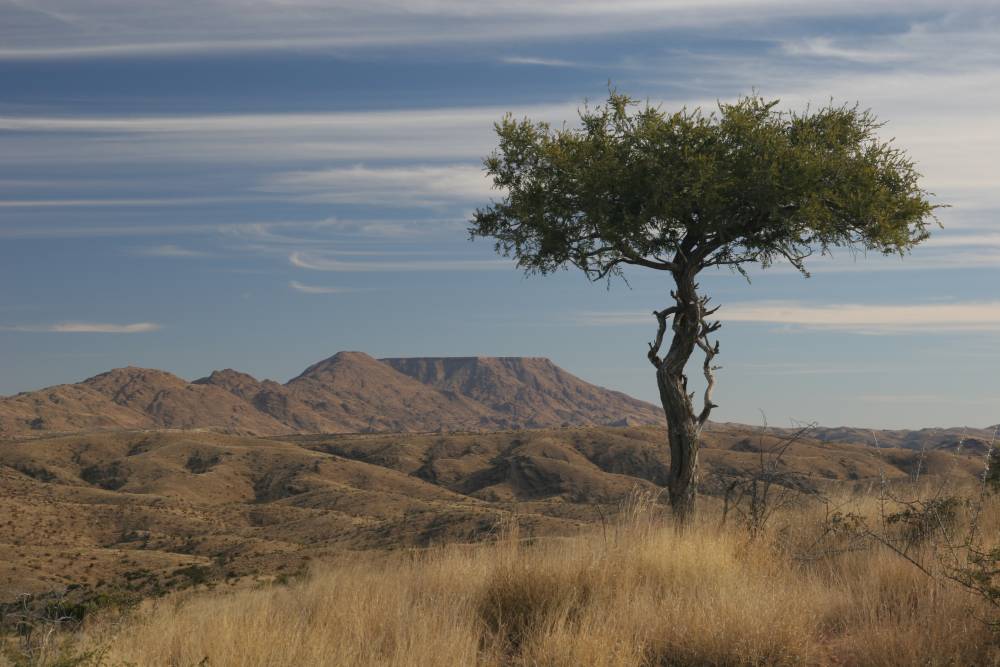 Blickrichtung Farm Hohenheim, am Horizont sind die HESS Teleskope (nicht auf dem