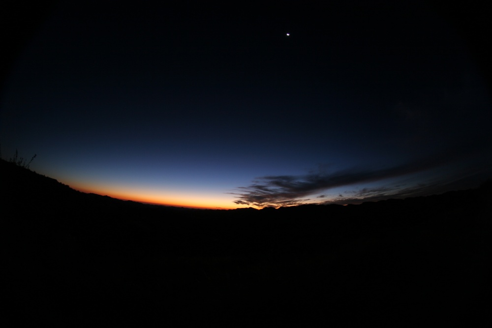 Nach Sonnenuntergang bilden sich wieder intensive rötliche Töne. Der Mond steht schon hoch und "stört" unsere Deep Sky Ambitionen bereits massiv.