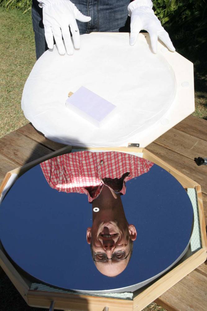 Einpacken ist angesagt, Achim im selbstgeschliffenem 17" Parabolspiegel