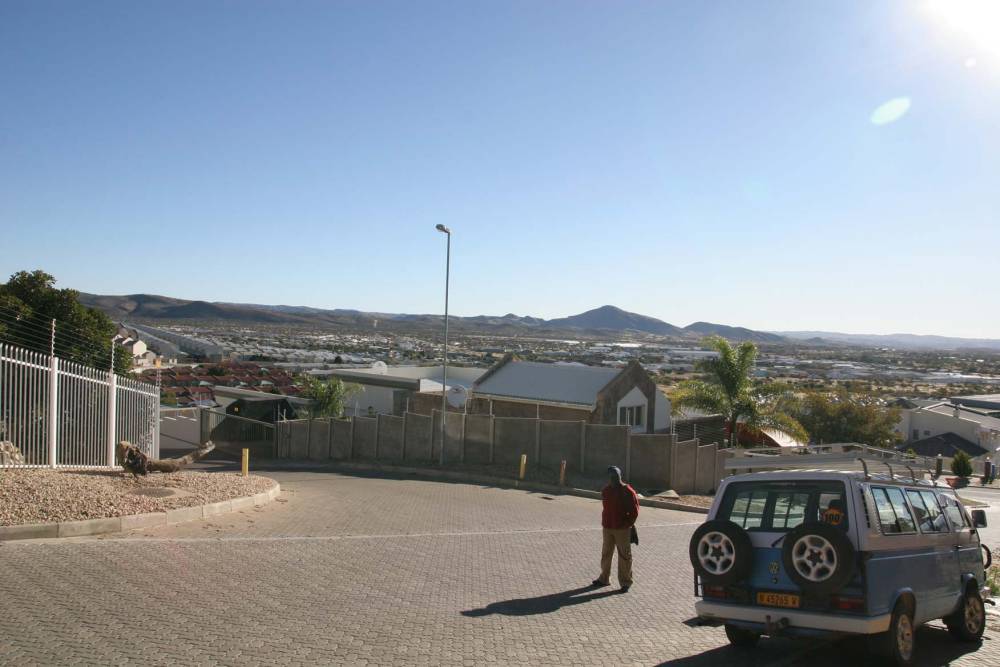 Die Wohnungen sind einfach aber sauber eingerichtet. Wie auf der Farm fehlt es an nichts. Wir entpacken wieder unser verstaubtes Gepäck und richten uns das Nötigste für die letzten Stunden ein. Lange verweilen wir nicht im Haus, es geht weiter in Richtung Windhuk. Waltraud ist so nett und fährt ein paar Stadtrunden. Die Unterschiede zwischen Arm und Reich sind extrem. Von Palästen mit gigantischen, nicht astronomisch genutzten Kuppeln zum Tagelöhner sehen wir alles auf engem Raum. Eine fremde Welt, die zumindest ich versuche zu verdrängen. Wegschauen fällt jedoch nicht leicht, steht doch z.B. der große Reichtum im krassen Gegensatz zu den immer noch nicht vollständig besetzten Schulen, die Armut verhindert das Finanzieren der notwendigen Schuluniformen.