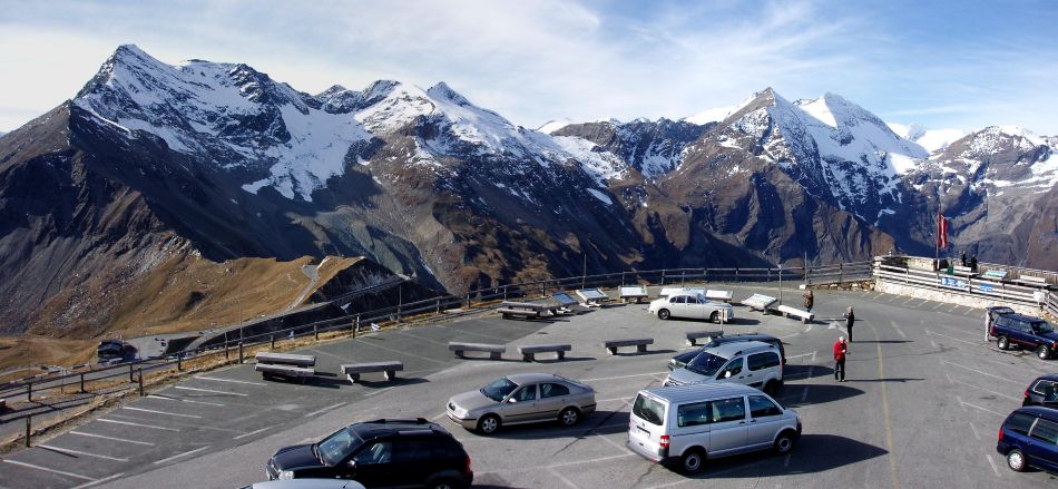 letzter Blick auf den noch leeren Parkplatz der Edelweißspitze