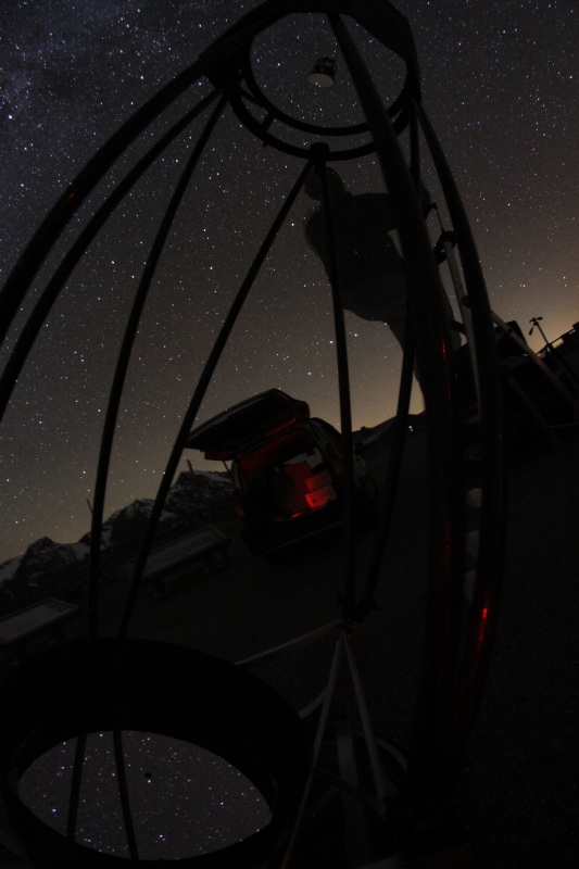 Die zweite Nacht startet ähnlich wie die erste aufhörte - hohe Bewölkung, aber ausgezeichnetes Seeing. Wir bauen aber guter Hoffnung auf und sollten dafür später auch belohnt werden. Nach und nach verzogen sich die Zirren und ließen den ersten ungetrübten Blick auf den gewaltigen Sternhimmel zu.