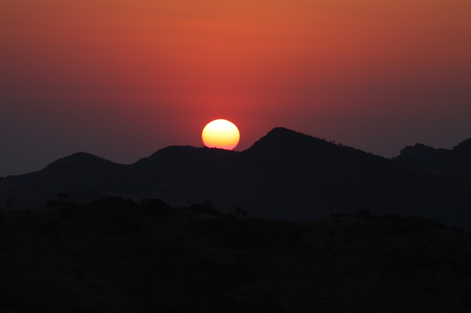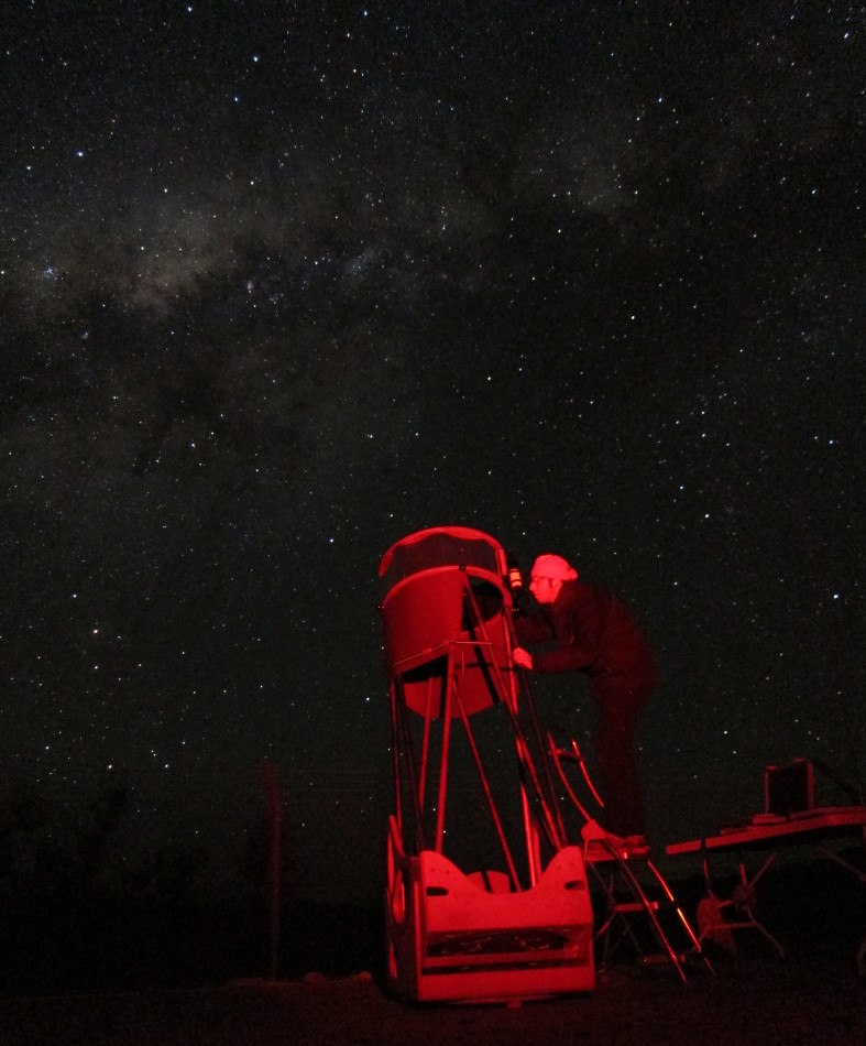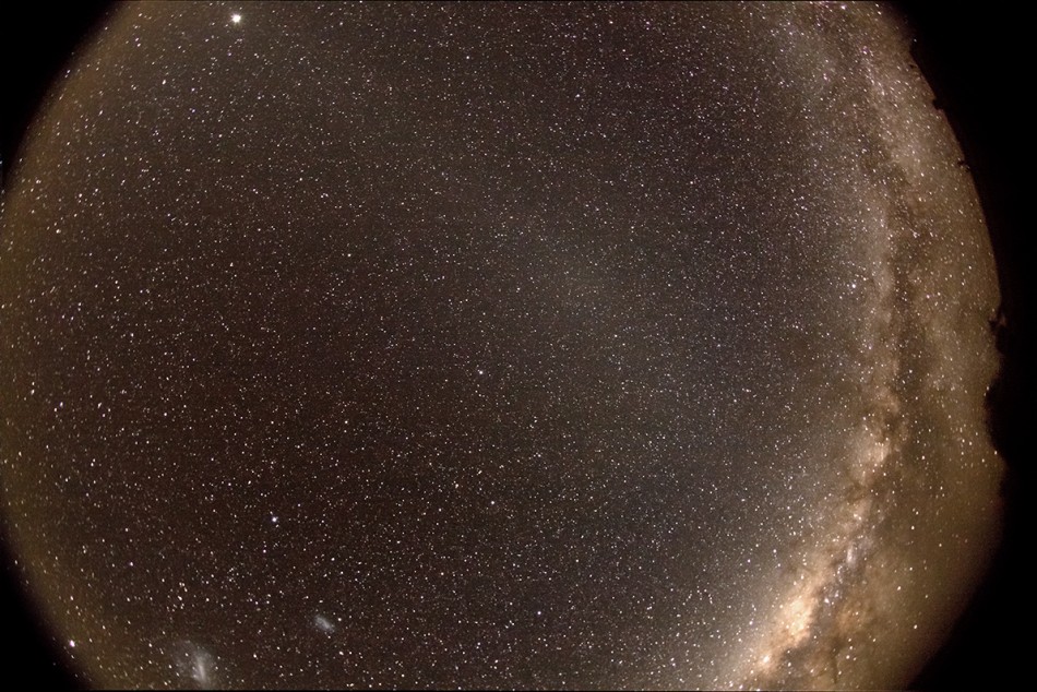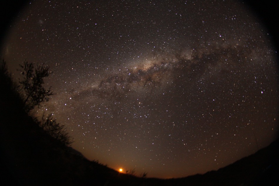 Monduntergang mit Milchstraßenzentrum und beiden Magellanschen Wolken