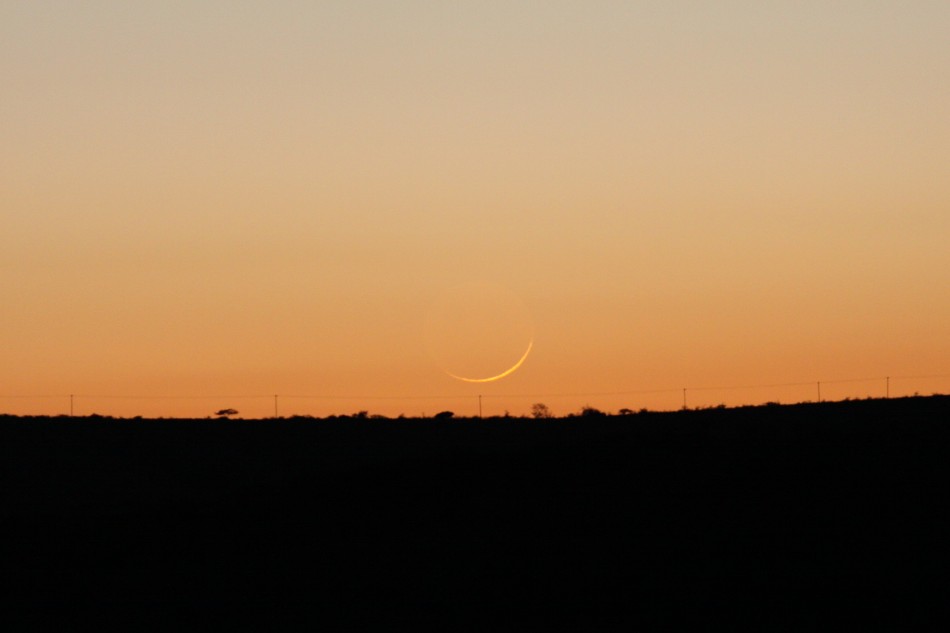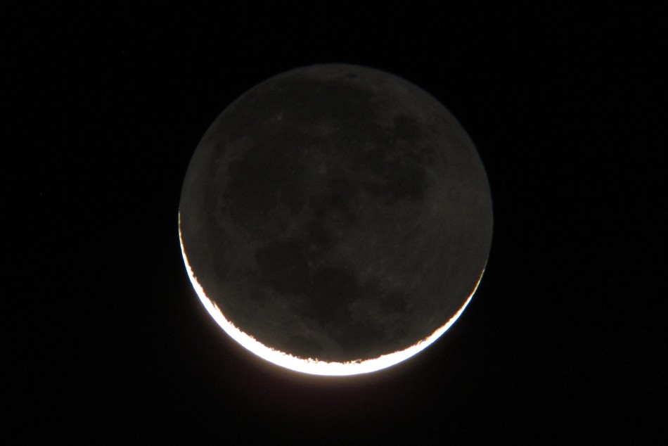 Aufgang des nur 22,5 Stunden alten Mondes - 1,2% beleuchtet und 13° von der Sonne