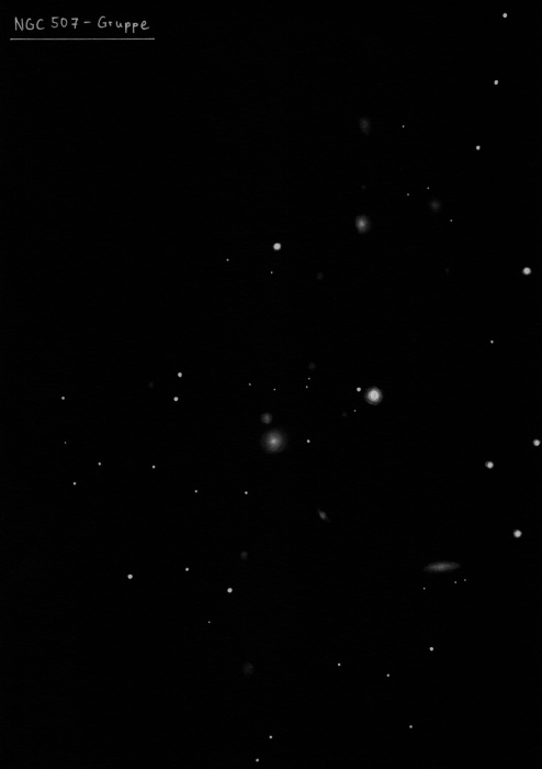504, IC 1684, IC 1685, IC 1687, IC 1689, IC 1690, PGC 5129 Teleskop: 8" f/4 Newton Vergrößerung: 80x - 160x Filter: / Bedingungen: fst 6m5+ Seeing: III Ort: Schwarzenberg